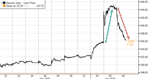 On Monday, shares of Chevron, ConocoPhillips, and ExxonMobil jumped on news of regime change in Venezuela. However, Chevron shares had given up most of those gains by late trading on Tuesday.