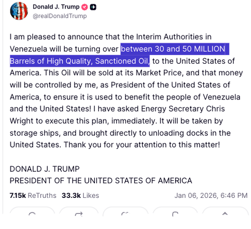 He added, "I have asked Energy Secretary Chris Wright to execute this plan immediately. The oil will be taken by storage ships and brought directly to unloading docks in the United States."